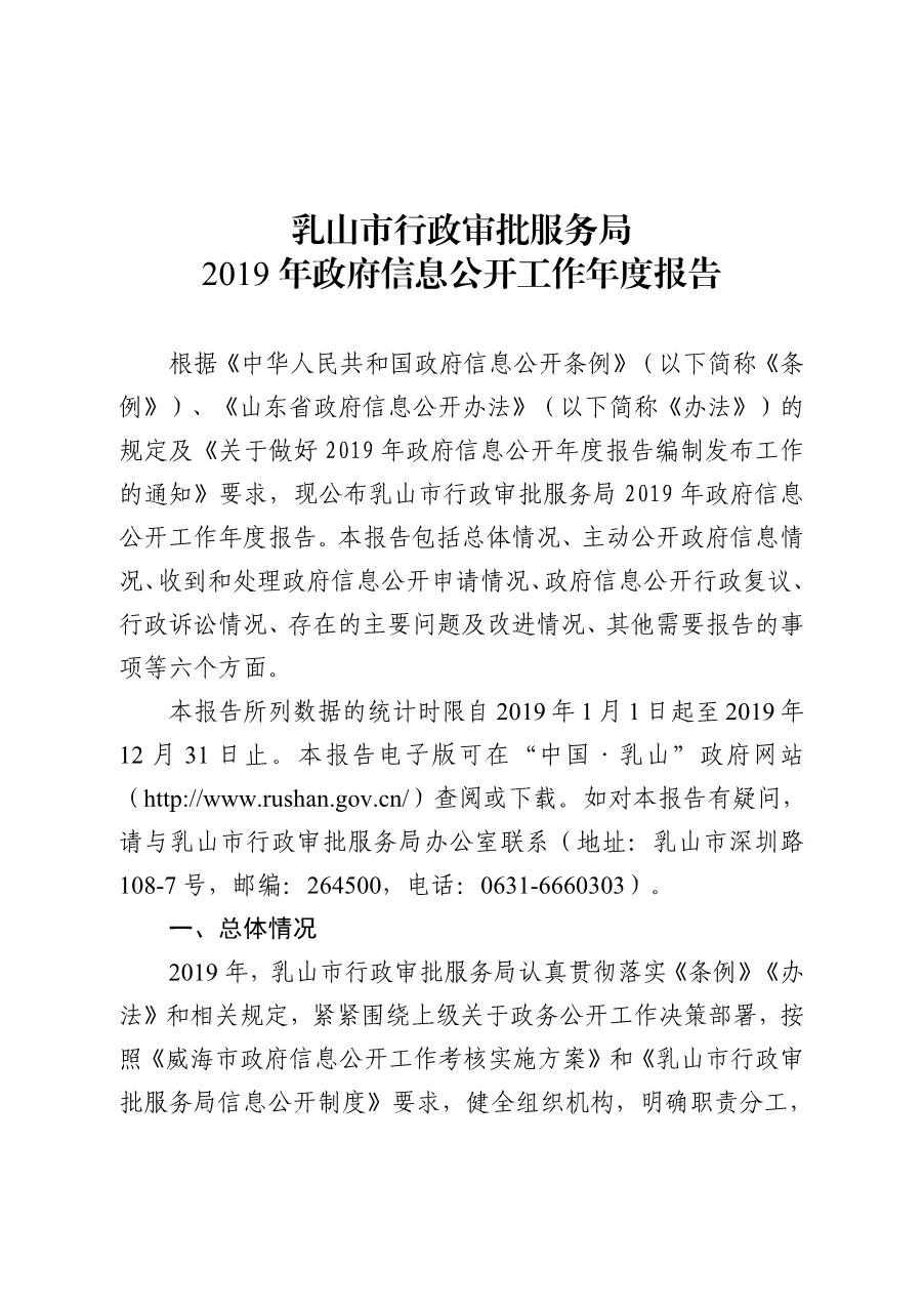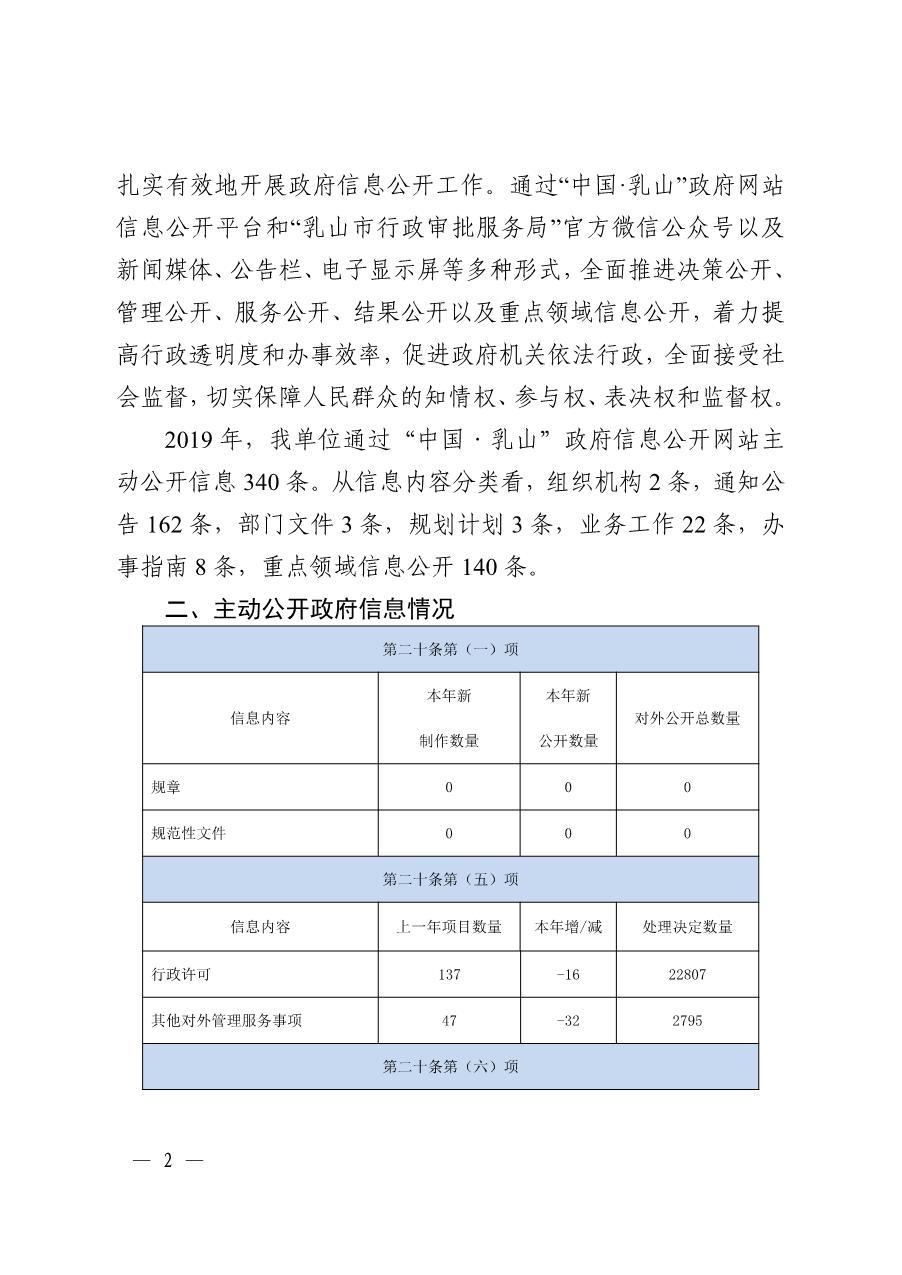 乳山市行政審批服務局2019年政府信息公開工作年度報告