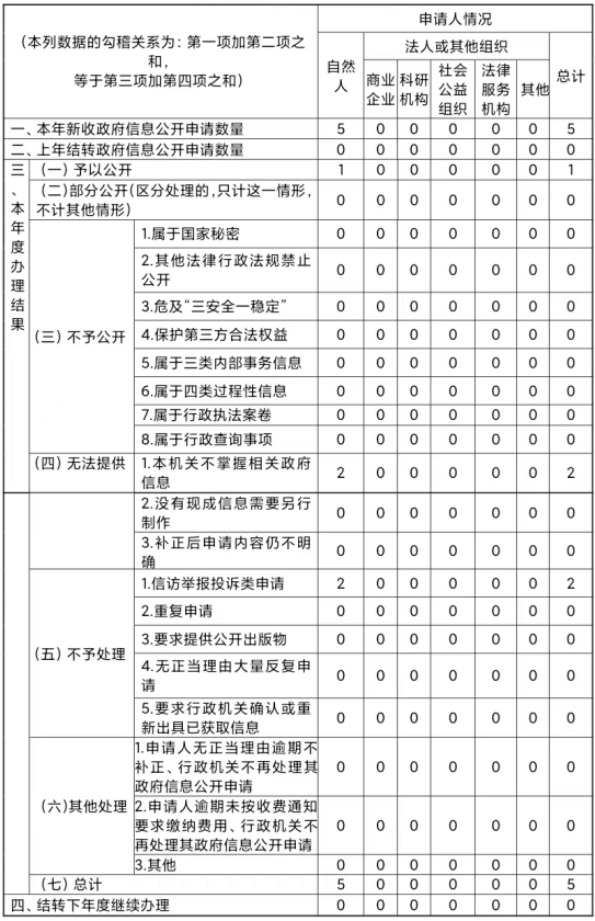 市政府辦公室本年度內共受理政府信息公開申請5件,依法依規答復5件。從辦理結果情況看,予以公開1件,占20%;本機關不掌握相關政府信息無法提供2件,占40%;不屬于依申請公開2件,占40%。無向政府信息公開申請人進行收費的情況。無因政府信息公開引起的行政復議和行政訴訟。