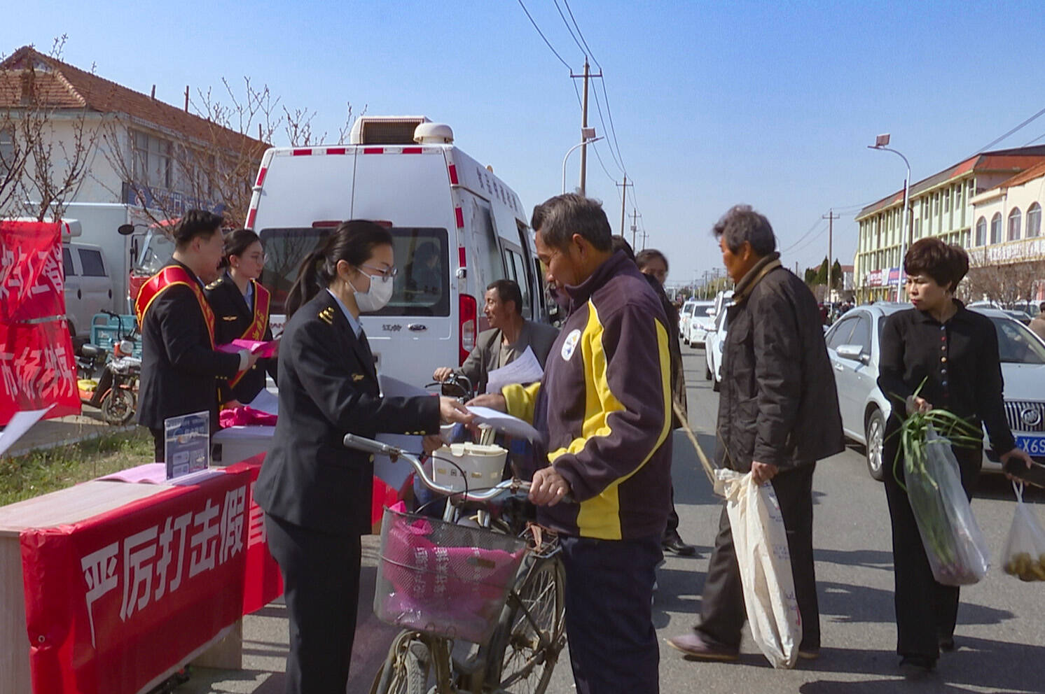 在乳山寨鎮大集上,市市場監督管理局的工作人員向趕集的群眾發放了包含假冒偽劣商品辨識、食品安全以及消費者權益保護等內容的宣傳單頁,普及相關知識,提升農村群眾對食品安全知識及法律法規知曉度。