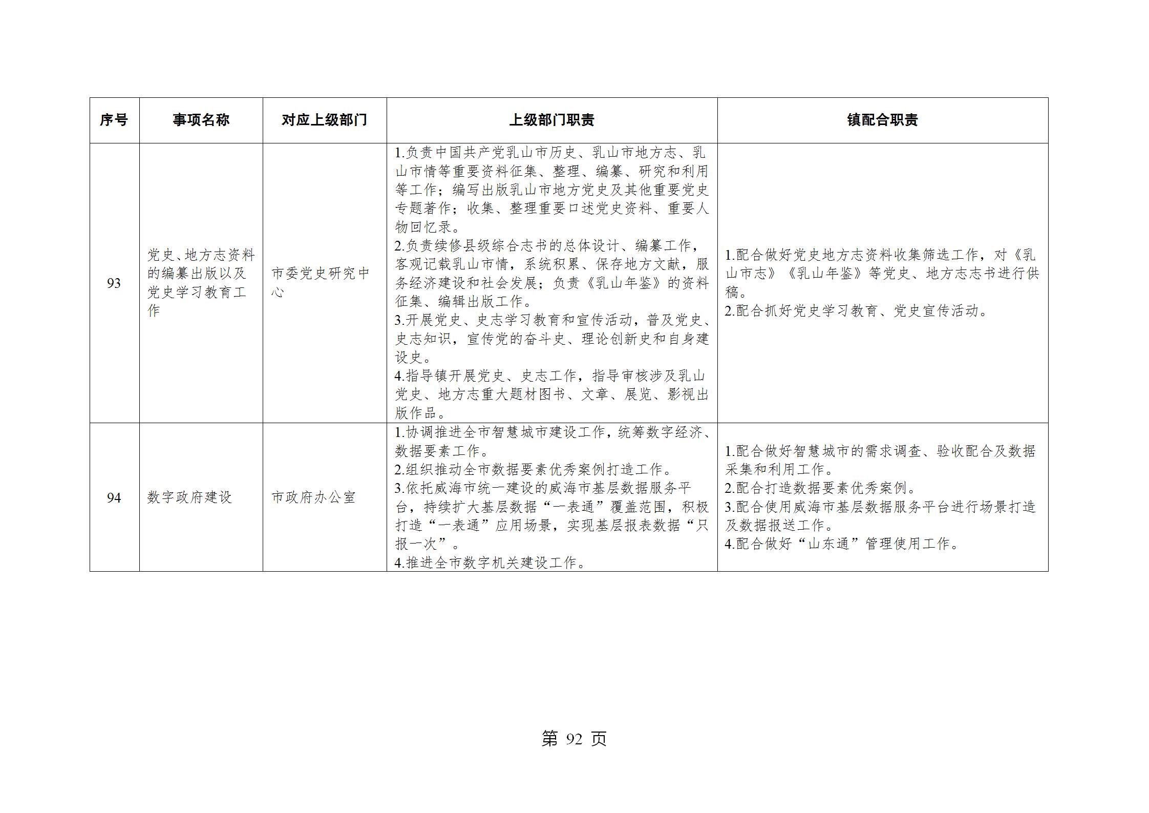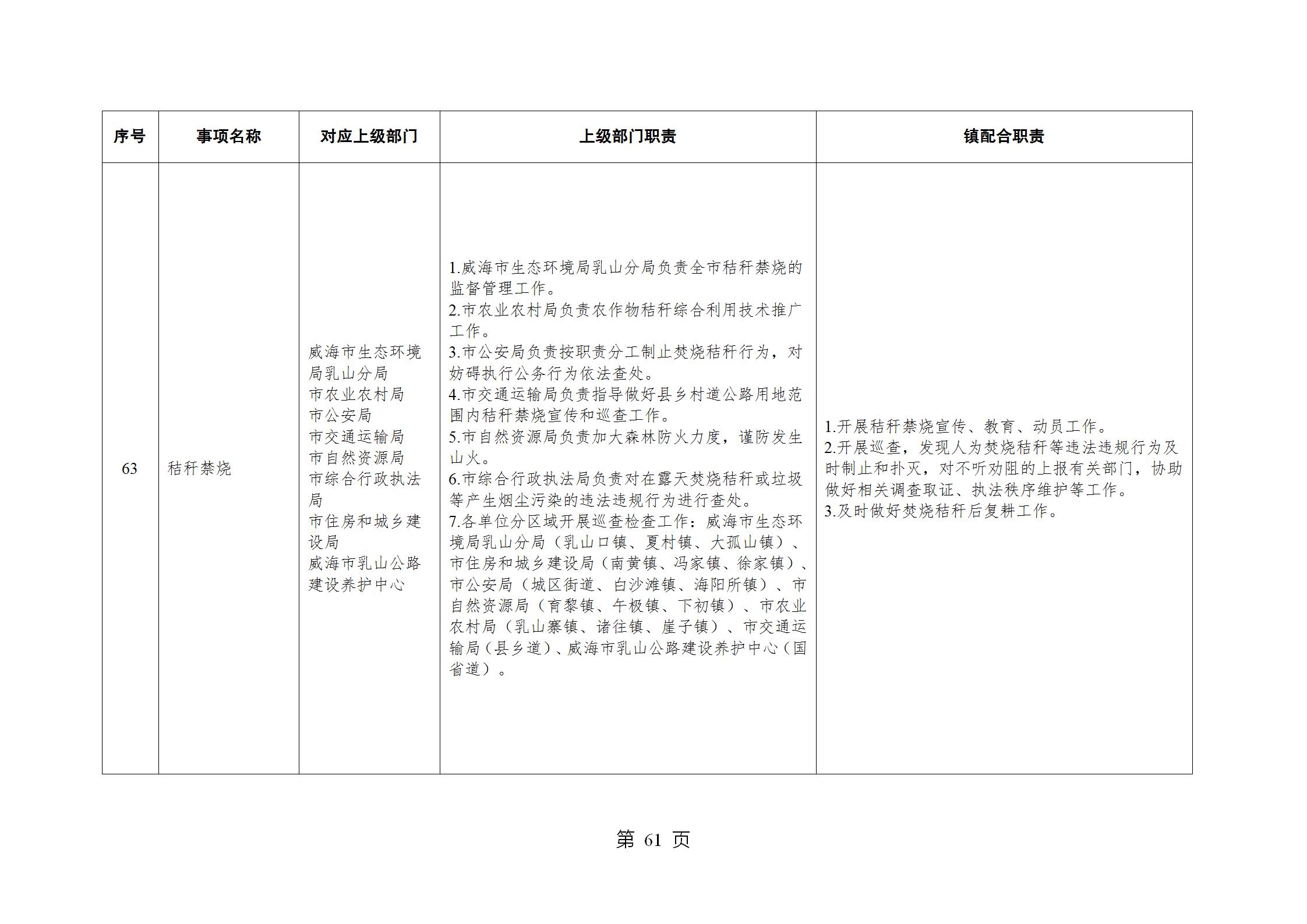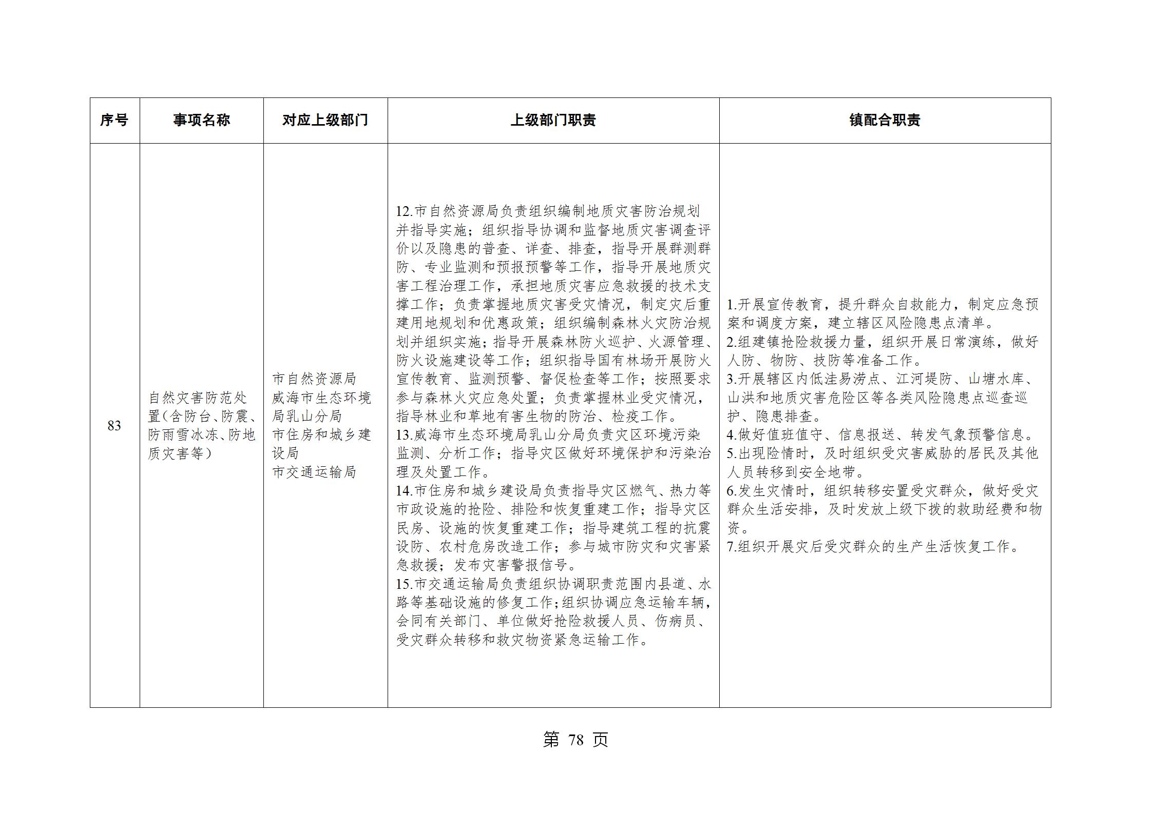 山東省威海市乳山市馮家鎮(zhèn)履行職責(zé)事項(xiàng)清單