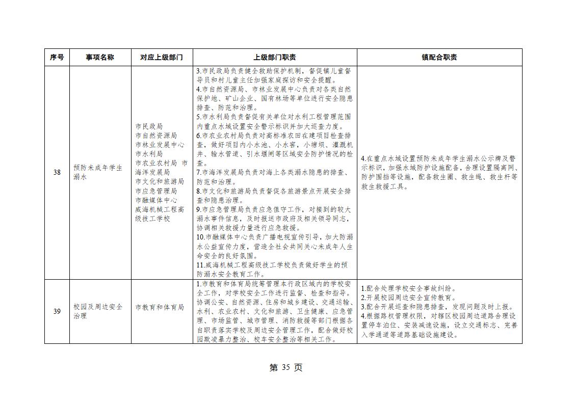 山東省威海市乳山市夏村鎮履行職責事項清單
