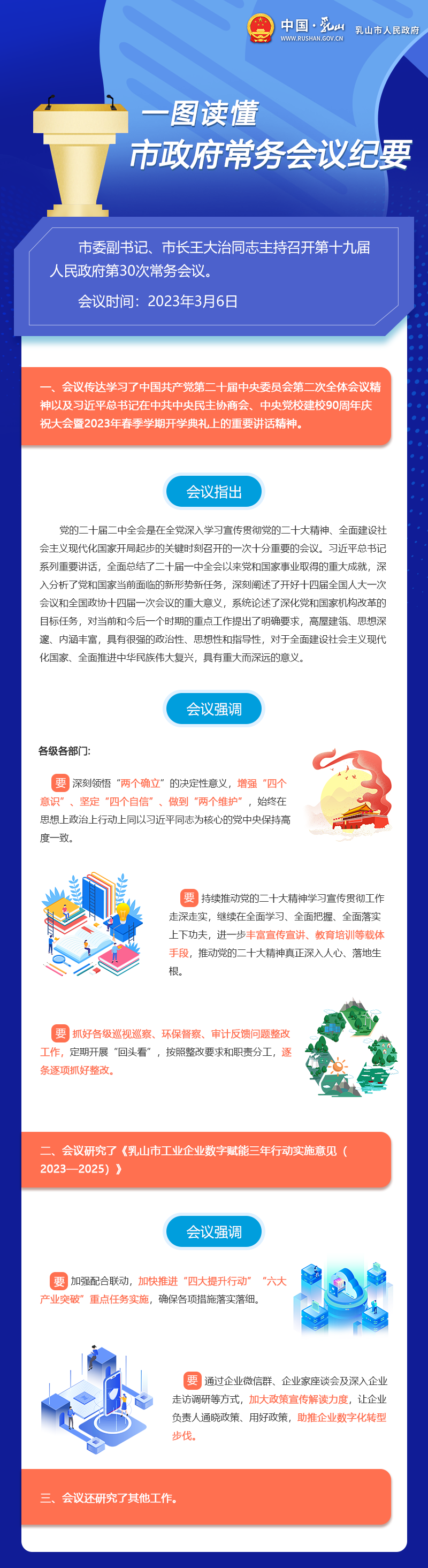 2023年3月6日,市委副書記、市長王大治同志主持召開第十九屆人民政府第30次常務(wù)會議。