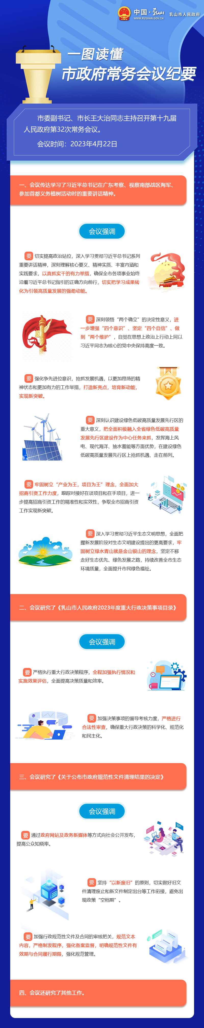 2023年4月22日,市委副書(shū)記、市長(zhǎng)王大治同志主持召開(kāi)第十九屆人民政府第32次常務(wù)會(huì)議。