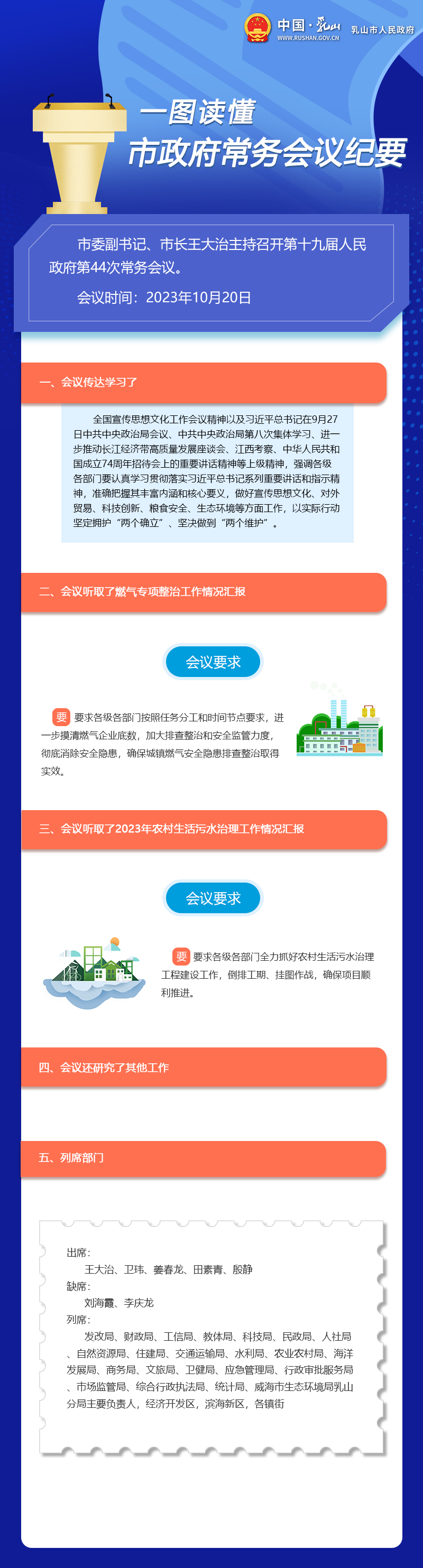 列席:發(fā)改局、財(cái)政局、工信局、教體局、科技局、民政局、人社局、自然資源局、住建局、交通運(yùn)輸局、水利局、農(nóng)業(yè)農(nóng)村局、海洋發(fā)展局、商務(wù)局、文旅局、衛(wèi)健局、應(yīng)急管理局、行政審批服務(wù)局、市場(chǎng)監(jiān)管局、綜合行政執(zhí)法局、統(tǒng)計(jì)局、威海市生態(tài)環(huán)境局乳山分局主要負(fù)責(zé)人,經(jīng)濟(jì)開(kāi)發(fā)區(qū),濱海新區(qū),各鎮(zhèn)街,群眾代表