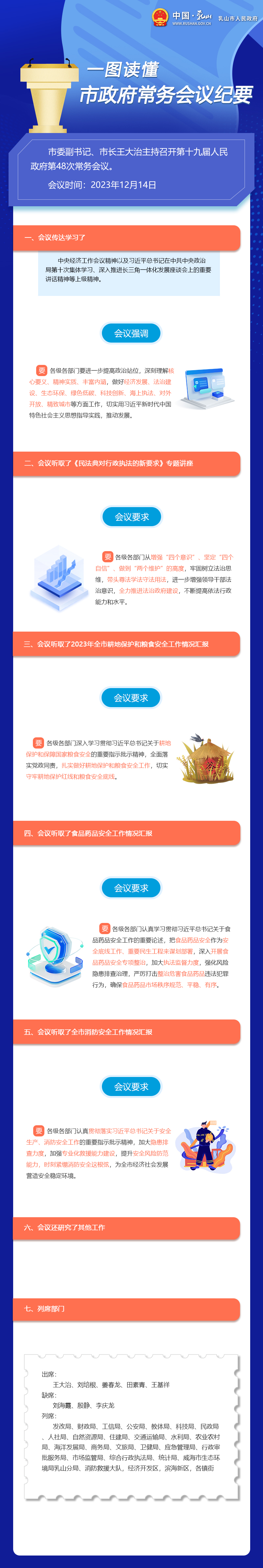 列席:發改局、財政局、工信局、公安局、教體局、科技局、民政局、人社局、自然資源局、住建局、交通運輸局、水利局、農業農村局、海洋發展局、商務局、文旅局、衛健局、應急管理局、行政審批服務局、市場監管局、綜合行政執法局、統計局、威海市生態環境局乳山分局、消防救援大隊,經濟開發區,濱海新區,各鎮街