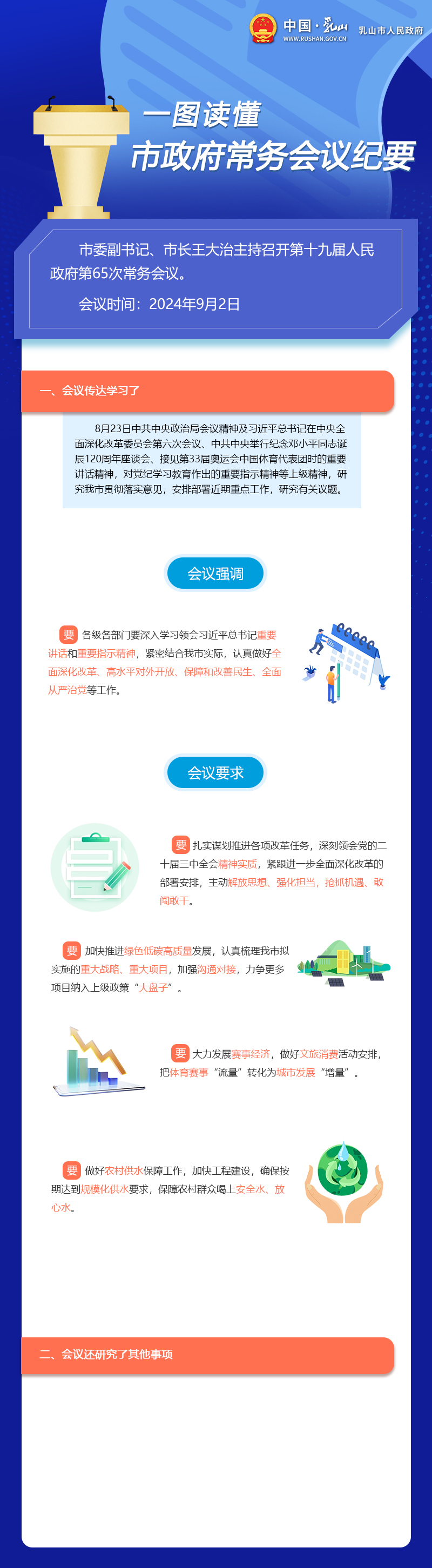 | 乳山市第十九屆人民政府第六十五次常務(wù)會議 2024-09-03 |